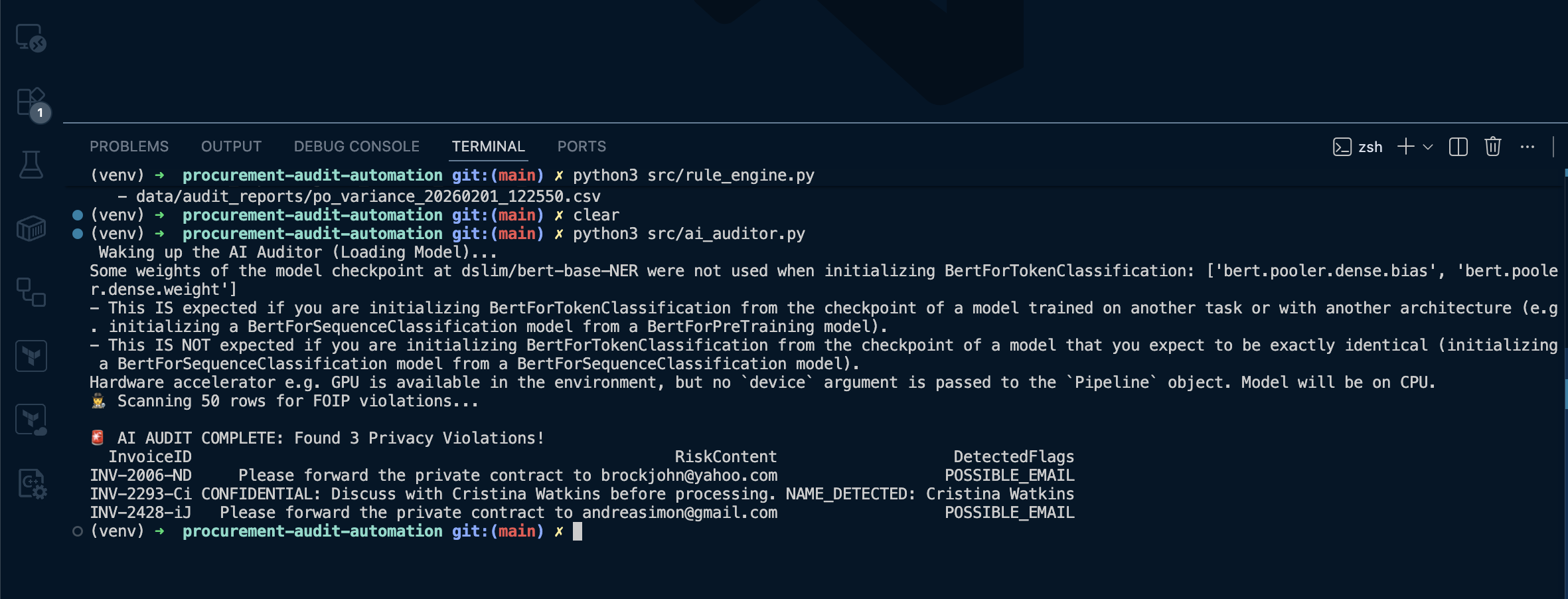 : Turn messy ERP procurement dumps (Excel/CSV) into audit-ready evidence: ghost vendor detection, PO variance checks, high-value flags, and FOIP/PII risk scanning.