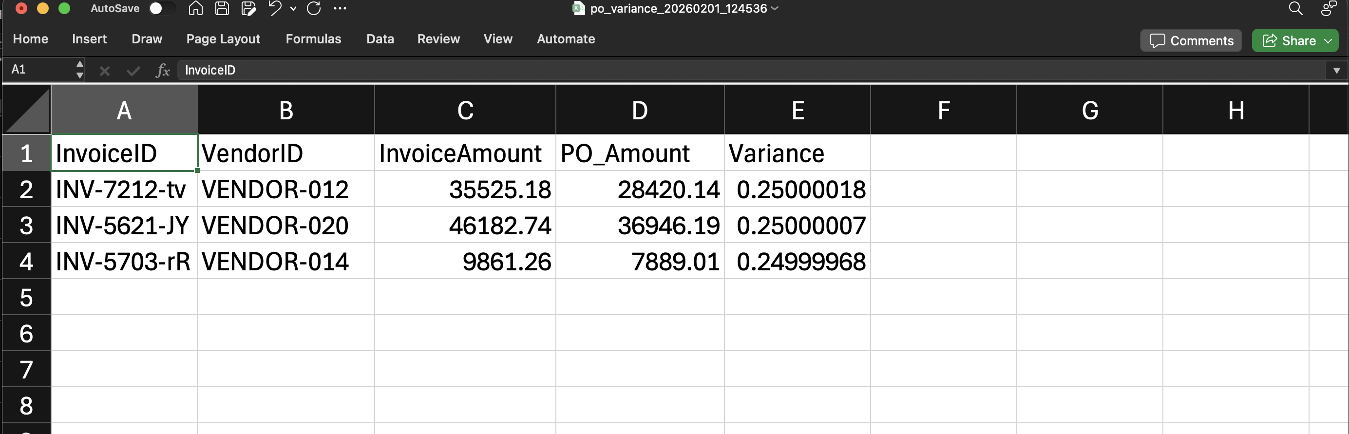 - PO variance: data/audit_reports/po_variance_20260201_125633.csv